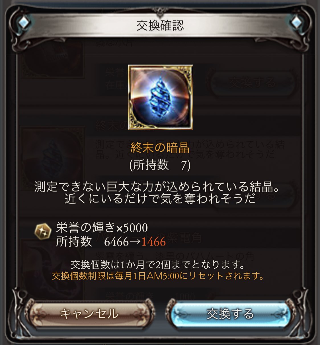 英雄武器の複製品 4個/月 武勲の輝き×500 の銀片 個/月 武勲の輝き×0 英雄武器の作成に必要なSR武器や、十天関連に使用する銀片を交換可能になる予定。 今まで共闘バトル 碧麗の証(第2位) 十天衆の限界超越(Lv130と150)に必要となるアイテム。 運営によると 古戦場での取得以外に入手方法は一切ない とのことなので、十天衆の限界超越を進める